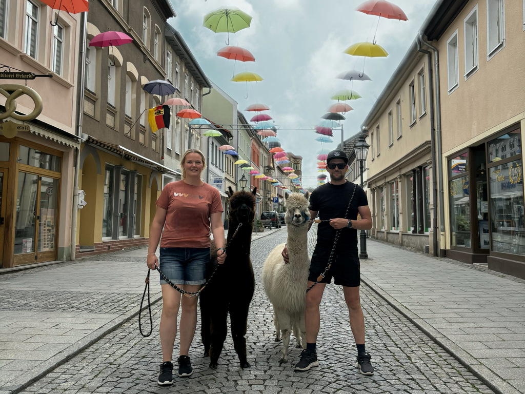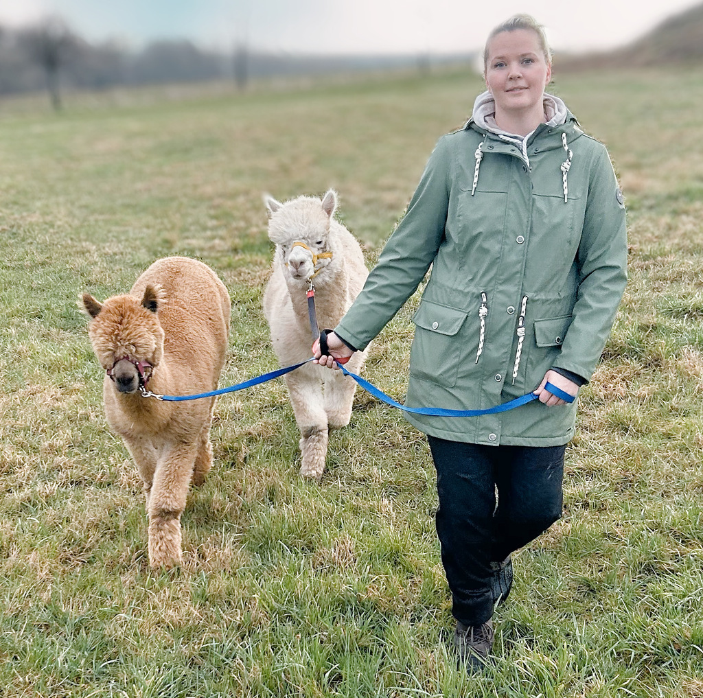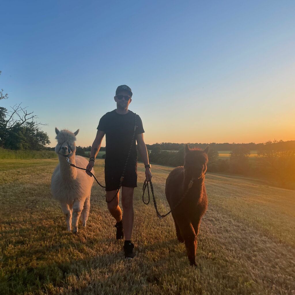Wenn alles noch schläft und der Tau die Grashalme umgibt, da sind wir oft schon mit den Jungs unterwegs, um die Ruhe zu genießen, keine Autos, kein Lärm, nur die Alpakas, die Natur und wir.
