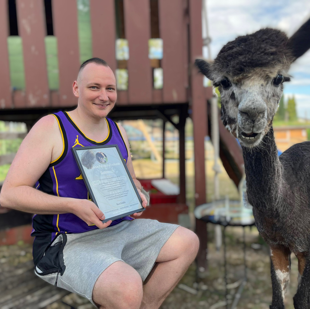✔️ Zertifikat mit deinem Namen und dem Namen deines Paten-Alpakas