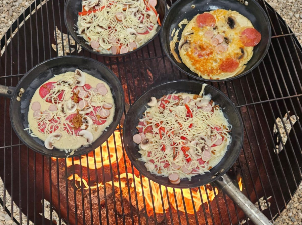 Das Highlight zum Abschluss des Kindergeburtstag, wir machen selber zusammen Pizza auf offener Flamme und nach eigenem Rezept.